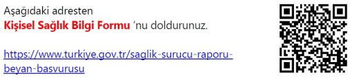 Yeni ehliyet alacak veya ehliyetini yenileyecek olan vatandaşlarımız sağlık raporu alabilmek için önce E-DEVLET üzerinden başvuru yapmak zorundadır. E-devlete giriş yaptıktan sonra arama bölümüne " KİŞİSEL SAĞLIK BİLGİ FORMU " yazıp, YENİ BAŞVURU dedikten sonra gelen formun tamamen doldurup onaylanması gerekmektedir.