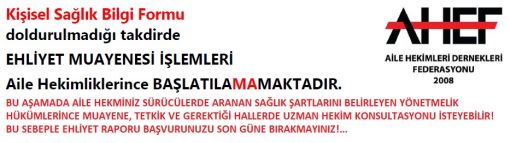 EHLİYET İÇİN SAĞLIK RAPORU ALACAKLARIN DİKKATİNE
